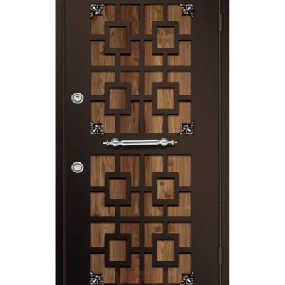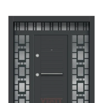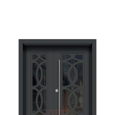 YİĞİT ÇELİK KAPI YC 109 çift kapı, diagonal metal aksanlı kompozit yüzey