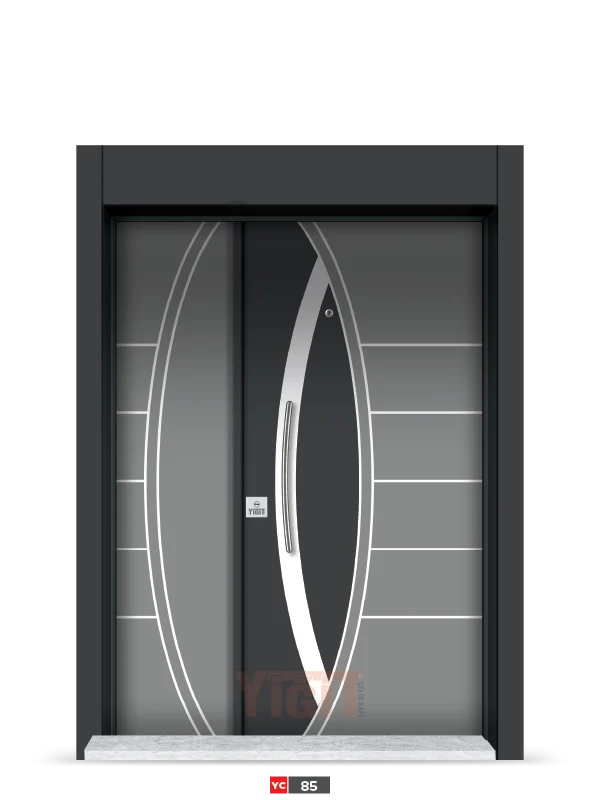 YİĞİT ÇELİK KAPI YC 85 kompozit panel, eliptik gümüş çizgili desen