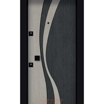 Dalgalı desenli ceviz ve beyaz lüks çelik kapı YC-56